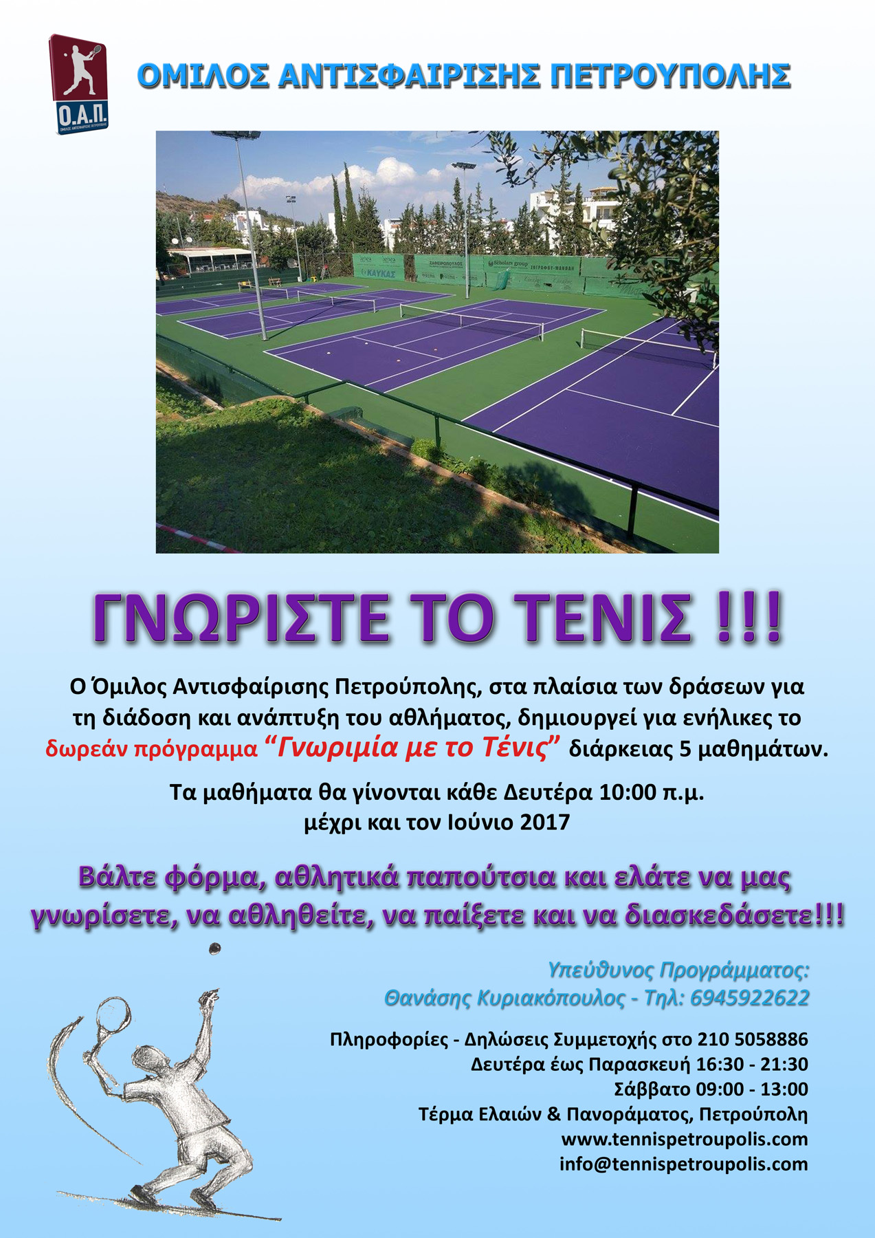ΓΝΩΡΙΣΤΕ ΤΟ ΤΕΝΙΣ- ΔΩΡΕΑΝ ΠΡΟΓΡΑΜΜΑ ΕΝΗΛΙΚΩΝ