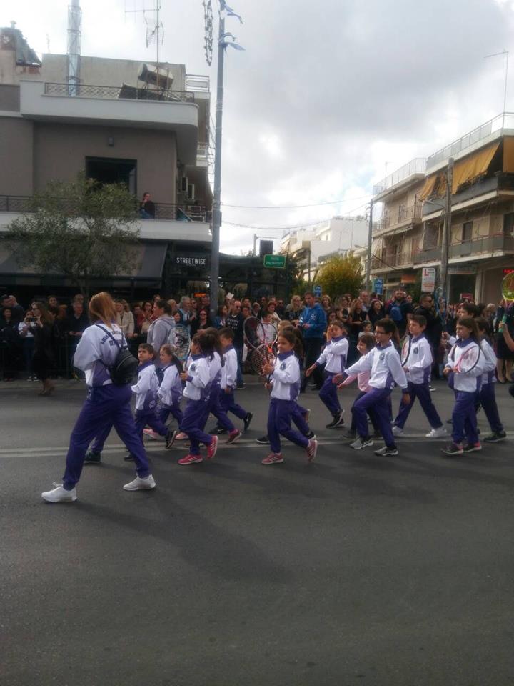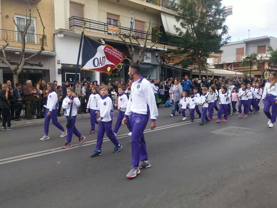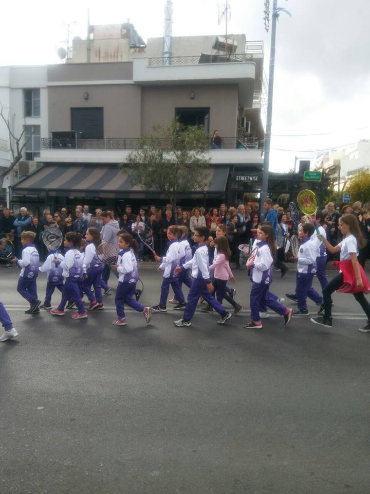 Οι μικροί αθλητές και αθλήτριες του Ομίλου μας παρελαύνουν με τη συνοδεία των προπονητών τους, τιμώντας την επέτειο του '40