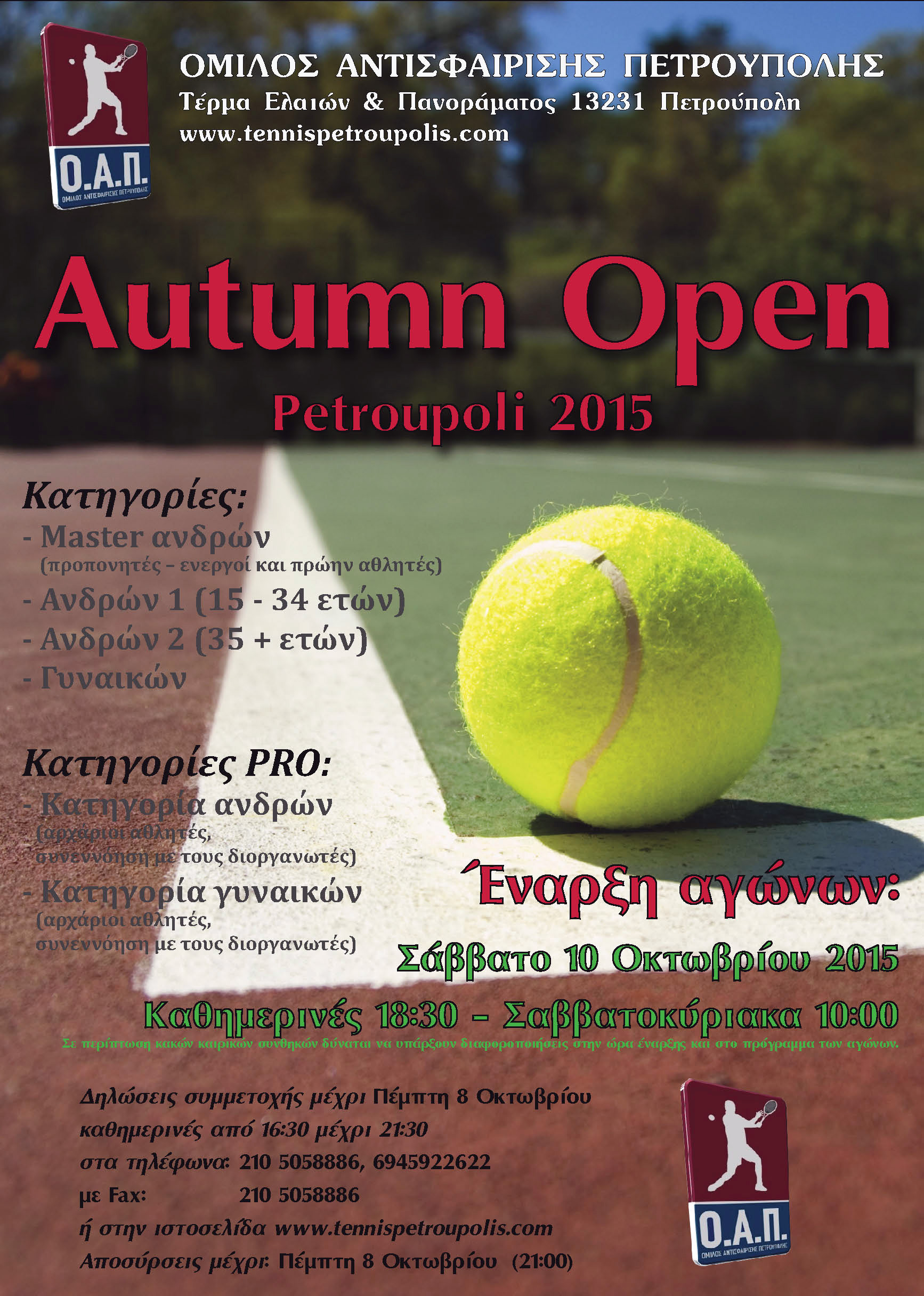 ΠΡΟΚΗΡΥΞΗ AUTUMN OPEN PETROUPOLI 2015